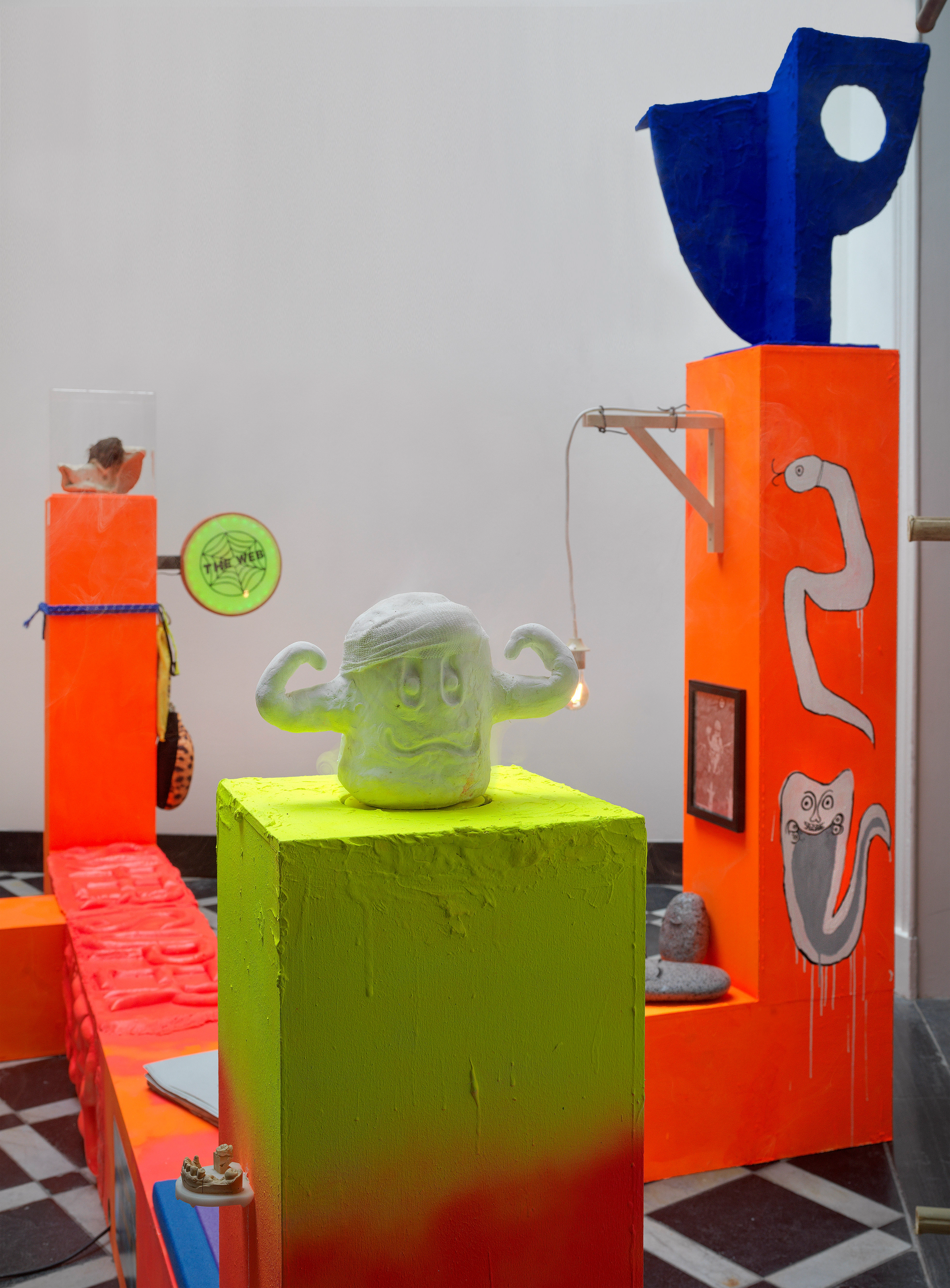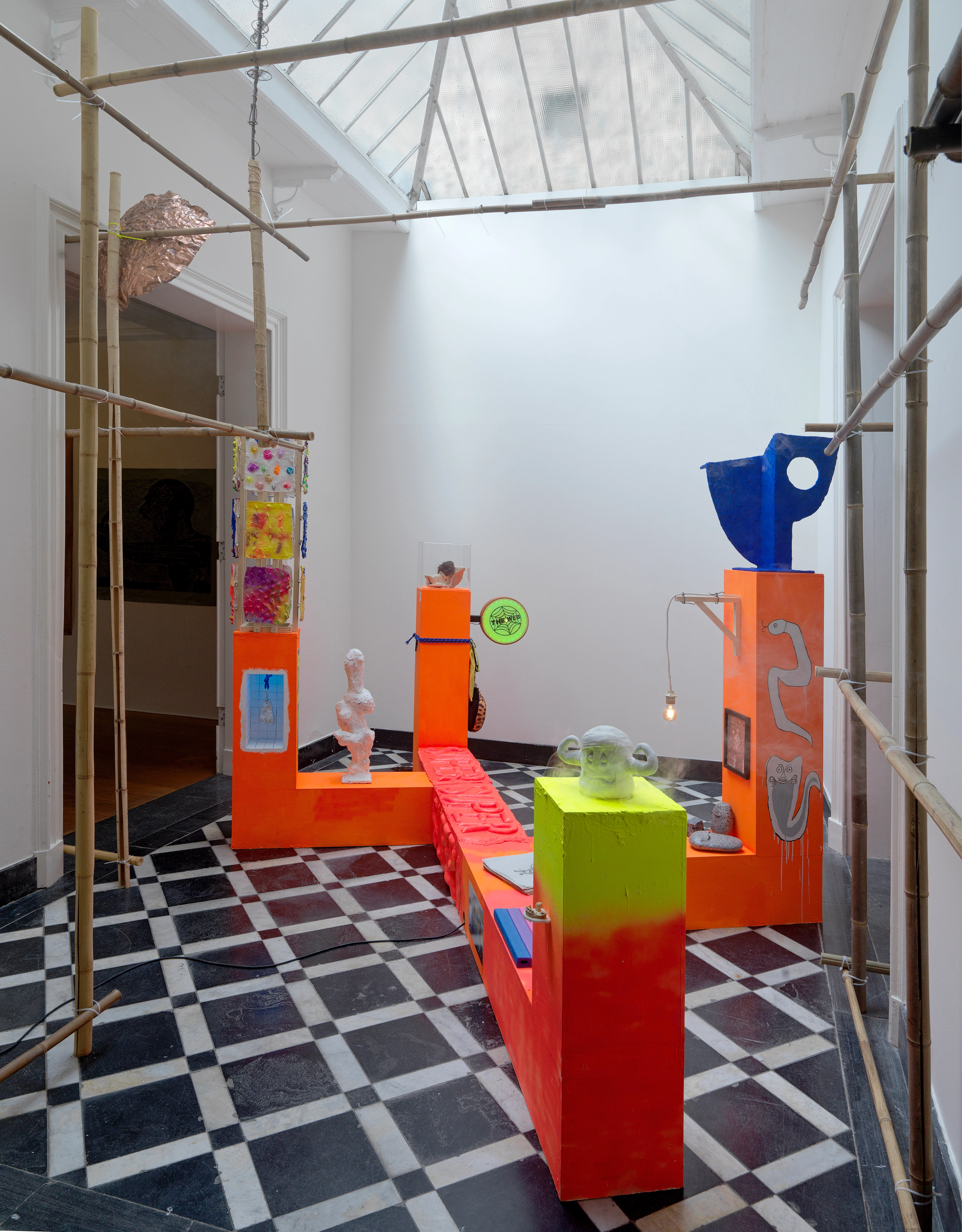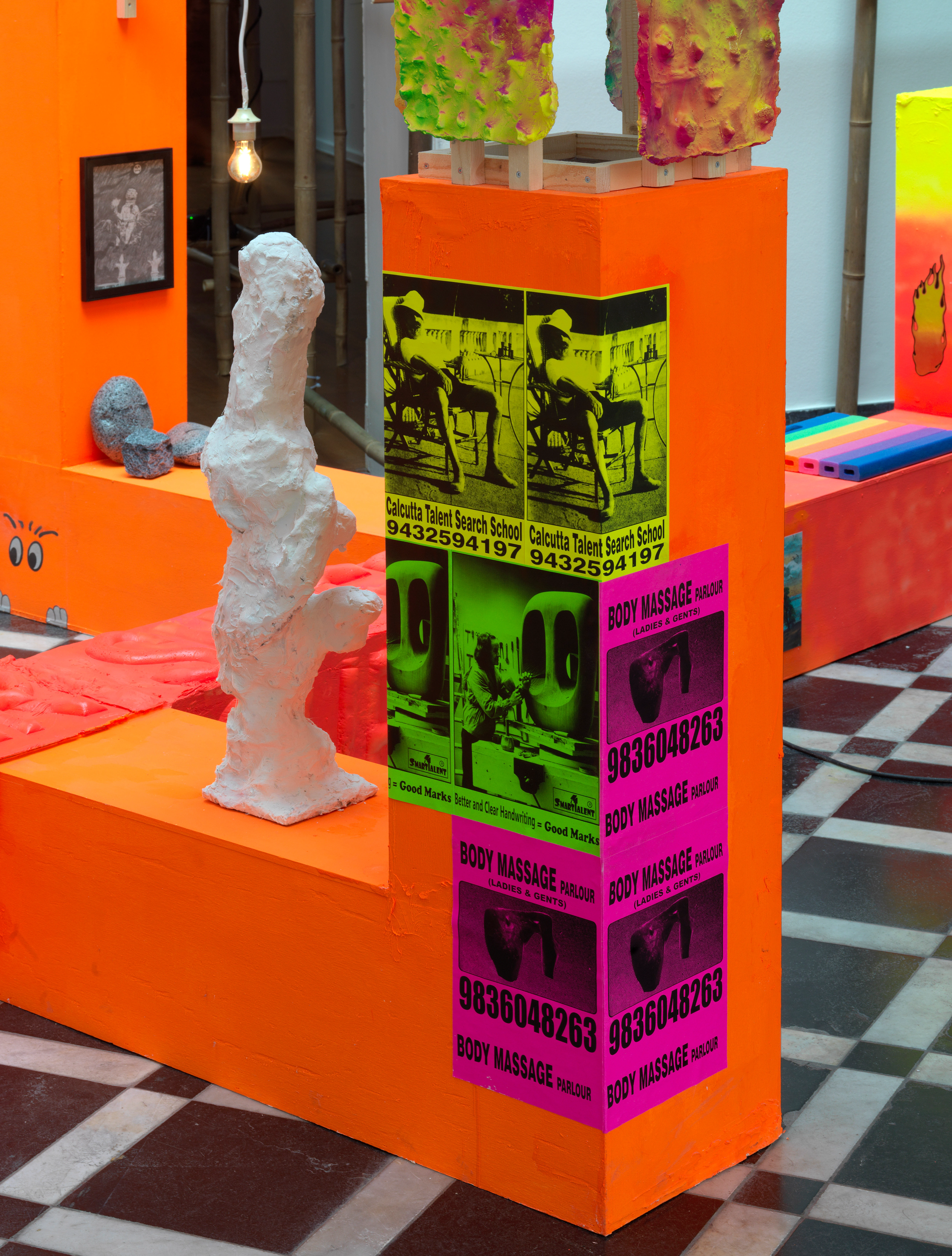 The exhibition 'Kolkata: Run in the Alley' offers a unique vision of the metropolis Kolkata (previously known as Calcutta) in India. The project stems from the art in residence project CARF, which in recent years brought a series of Netherlands-based artists to Kolkata to explore the city under the guidance of Bengal artists. During the work periods, the visiting and Bengal artists befriended each other. In Marres, they make a joint exhibition where they merge techniques, disciplines, and perspectives to create an intensely layered image of the city, in which bamboo scaffolding scenography, dokra-inspired bronze sculptures, cardboard-pulp furniture, accordion books, scrolls, tapestries and drawings are interwoven. Additionally, works by masters such as Binode Bihari Mukherjee, Sarbari Roy Choudhury, Ganesh Haloi, Somnath Hore, as well as historical pieces by the fashion designer Riten Mozumdar are on display. Most the Indian artists are exhibiting in the Netherlands for the first time.